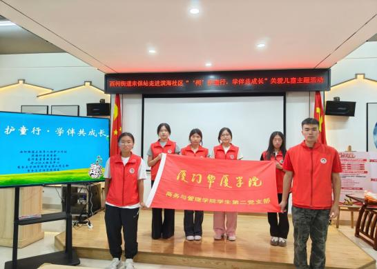 2025年6月28日,商务与管理学院“星火传承”实践队走进厦门市同安区西柯街道未成年保护站,开展“‘柯’护童行,学伴共成长”关爱儿童主题实践活动,为 20 位左右的困境儿童带来知识与温暖。