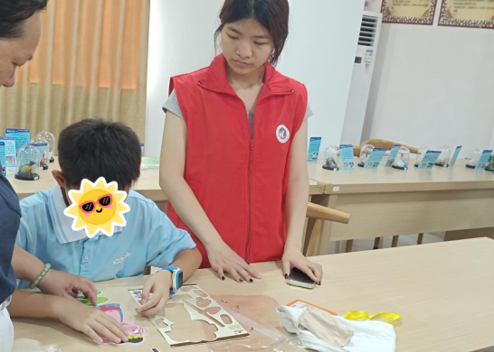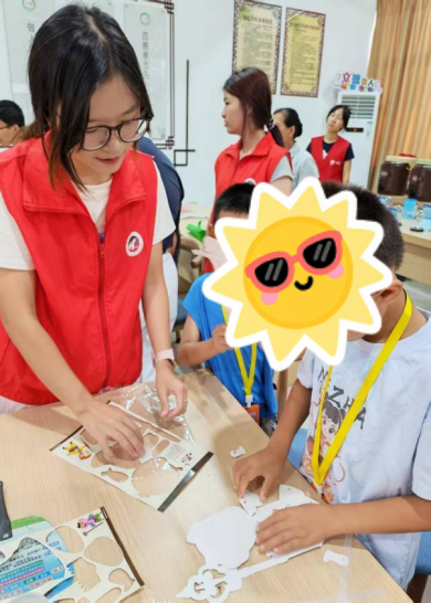 手工体验时,队员们耐心指导孩子们剪裁窗花、组装皮偶戏人偶。部分孩子动手能力弱,队员手把手教学。孩子们完成作品后满脸自豪。最后的皮偶戏表演,孩子们用自制皮偶演绎童趣故事,现场欢笑不断。这不仅让孩子们接触传统文化,还培养了创造力与动手能力,在心中种下文化传承种子,提升自我价值感。