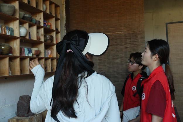 在黄厝村相关负责人的引领下,实践队开启文化解码之旅。从屋檐下沉淀岁月痕迹的水车,到博物馆内承载童真的手作展品,再到街巷间镌刻时光印记的特色建筑,负责人以详实史料与生动讲述,将当地民俗文化与历史脉络娓娓道来。