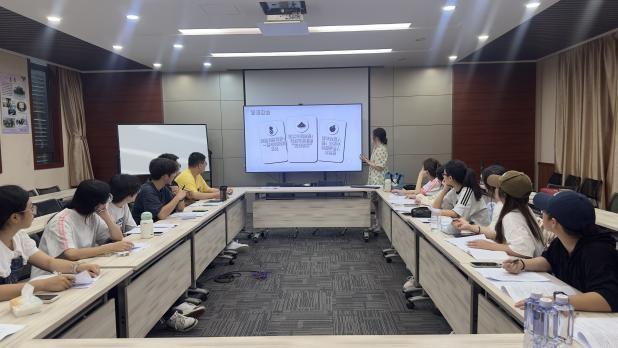 实践队队员精心编制《黄厝村速览手册》,周鹭岚老师结合手册内容,围绕“传统村落保护与开发的重要性”“寻找黄厝村的艺术乡建答案”“青年力量推动乡村振兴”三个方面展开专题讲解,为实践活动奠定理论基础。