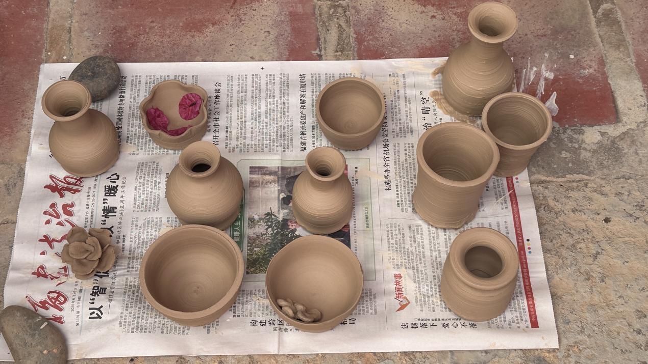 黄厝村制陶史可追溯至唐宋时期,如今在 “繁星 1358” 计划推动下重焕生机。实践队队员以陶土为媒介,在揉、捏、塑的指尖互动中,触摸“以陶为媒、艺术赋能”的乡村振兴脉络,以青年视角为传统陶艺文化的传承与创新写下生动注脚。
