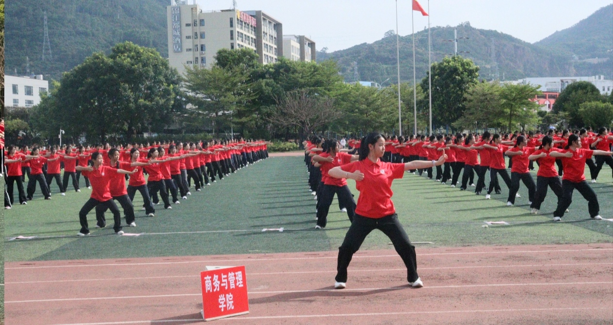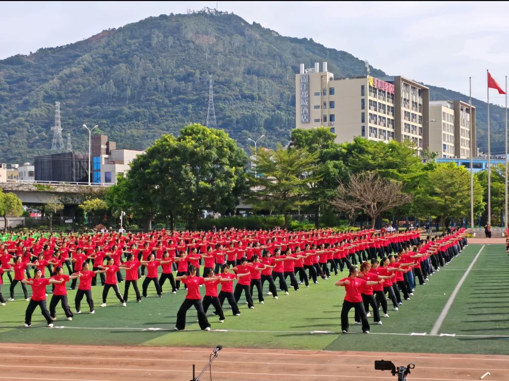 学院八段锦展演方阵动作齐整、呼吸相和,刚柔并济。