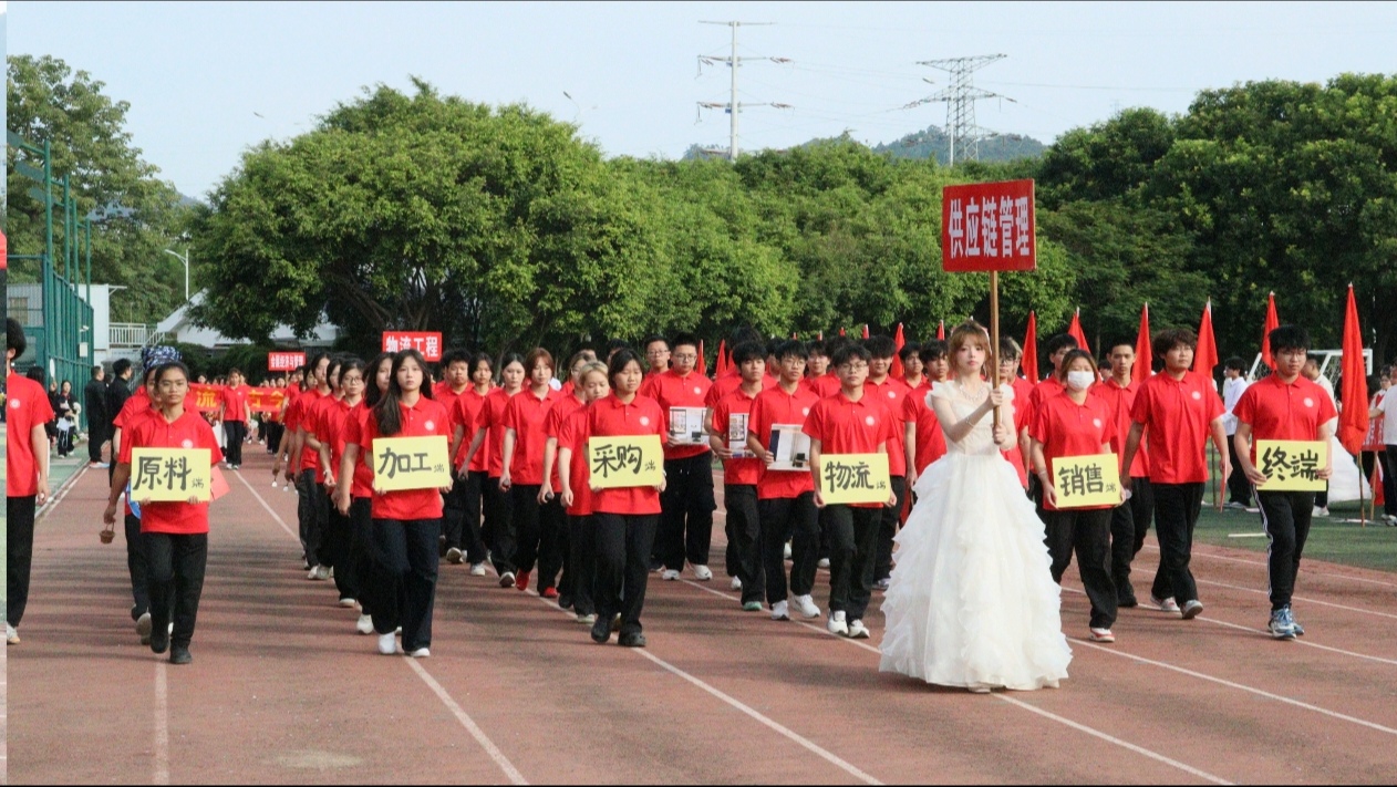 11月27日上午,我校2025年运动会盛大启幕。商务与管理学院以“精益、卓越、应用”精神为引领,在开幕式上尽显昂扬风貌与团结力量。