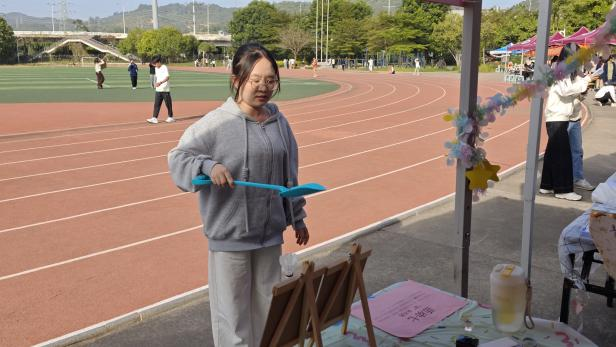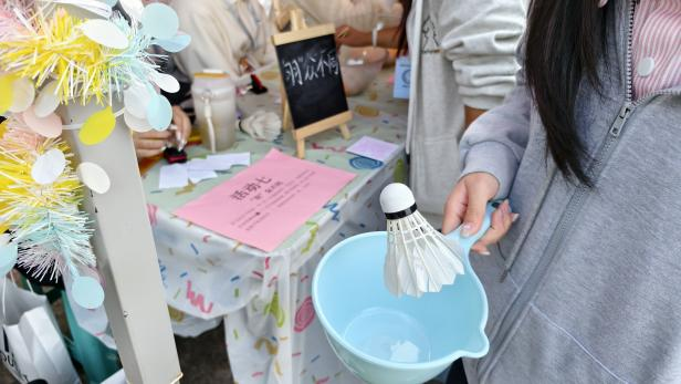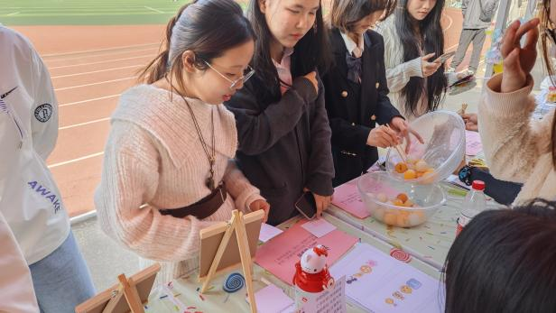 同学们在游戏前抽取盲盒工具,不同工具搭配颠球挑战,使游戏更添趣味。
