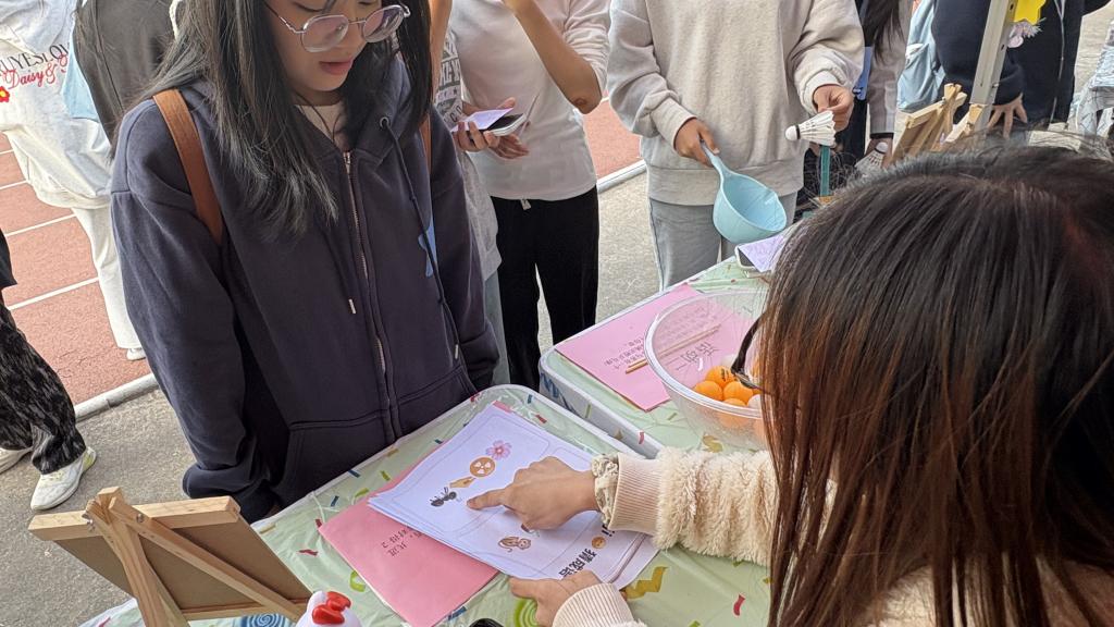 用筷子挑出盆中的黄球或白球,同学们在沉浸式体验中感受专注的力量,收获成长与乐趣。