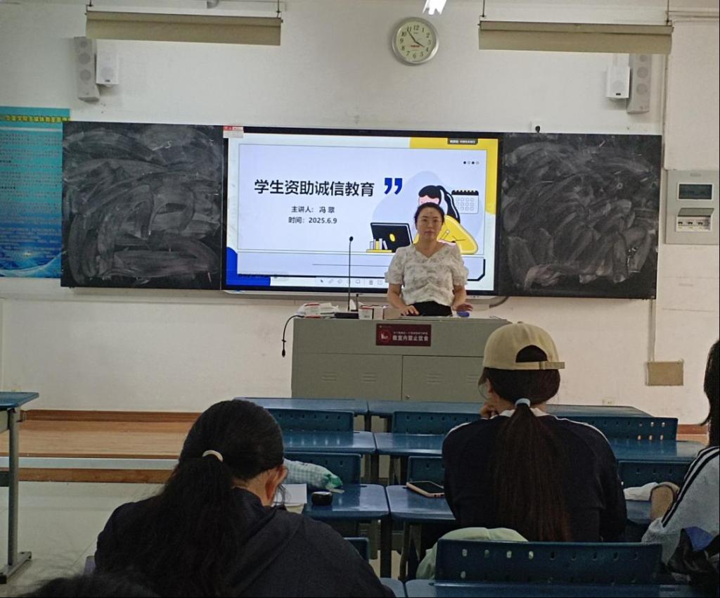 各班级开展主题班会。班会现场,辅导员围绕国家助学贷款政策展开细致解读,结合专业未来职场信用场景,强调“诚信履约”对职业发展的重要性。学生们结合课程知识,热烈讨论“金融诚信与职业操守”关联,深刻认识到诚信是商科领域安身立命之本,也是受助学生履约践诺的责任底线。