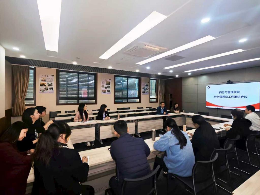 12月30日,商务与管理学院在望星307召开2026届毕业生就业创业工作会议,全面总结学院2025届毕业生就业创业工作,并对2026届工作进行动员部署。学院党政领导班子成员、各专业负责人参加会议。